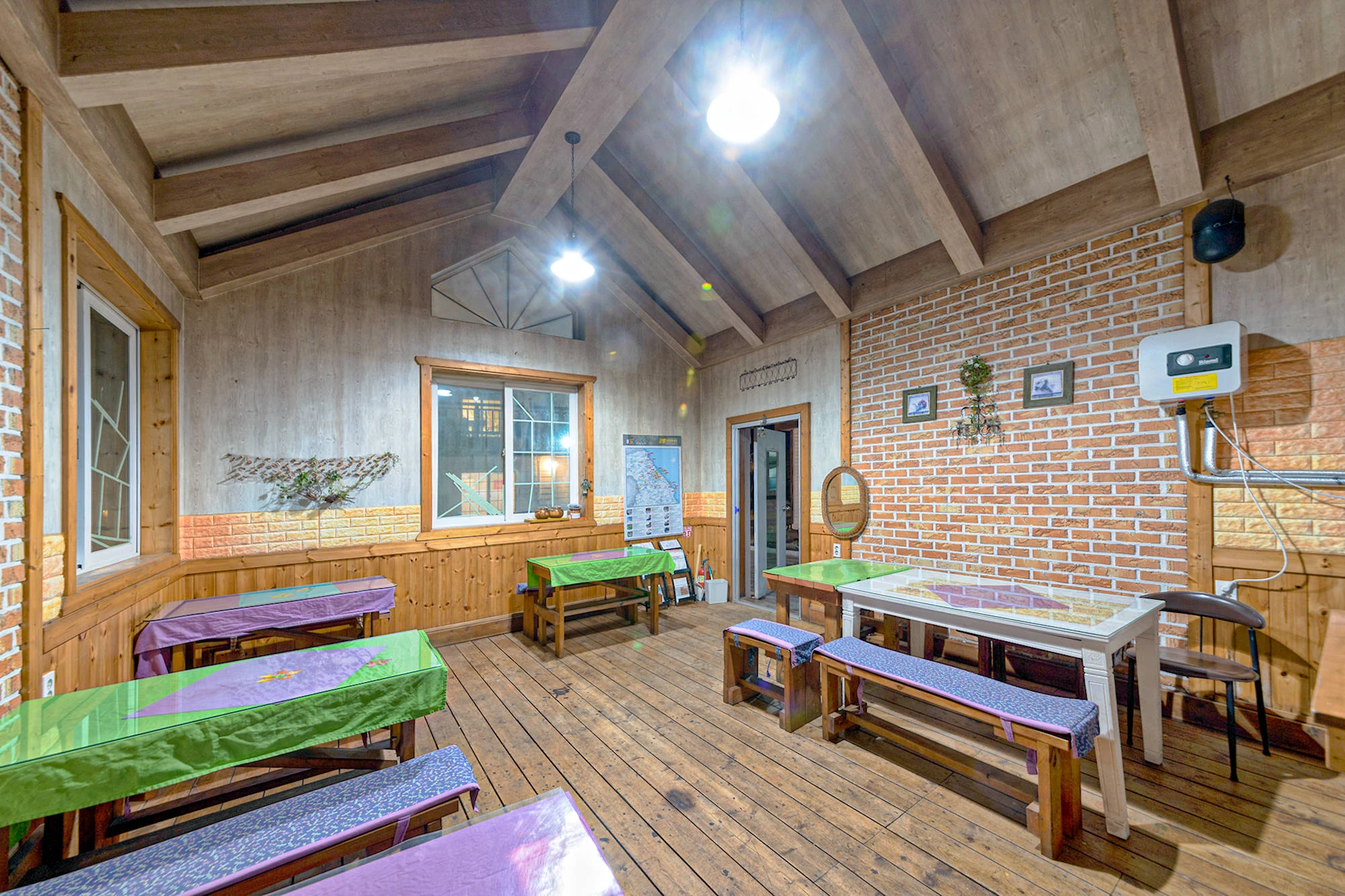 In a clean, cozy cabin.
